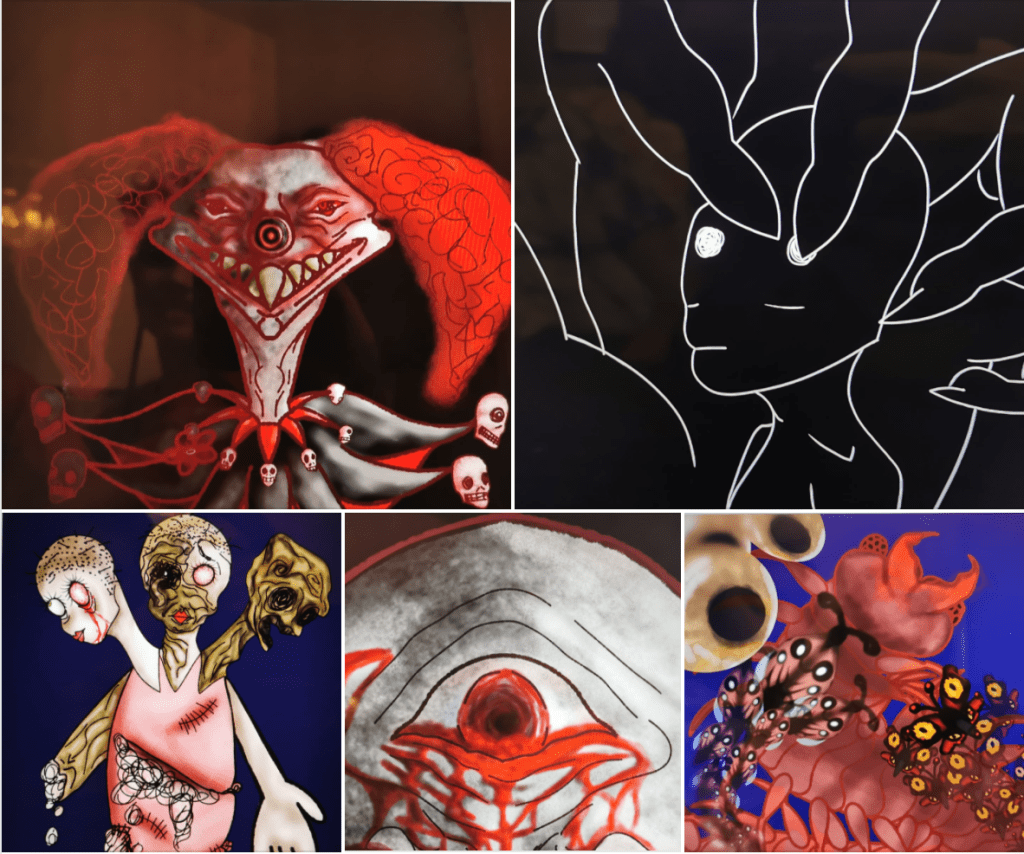 She was inspired by her online tribe to participate in Inktober. A challenge to do one drawing a day for the month. My child of darkness drew phobias.