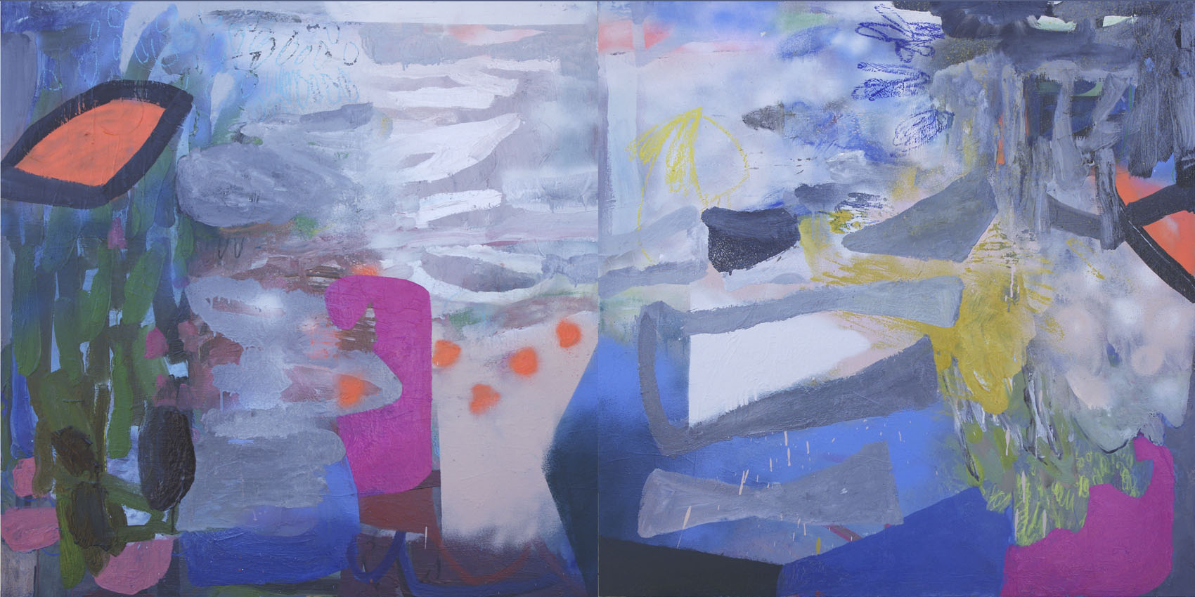 Hide and Seek, mixed media on panel, 40″ x 80″ (diptych), 2013