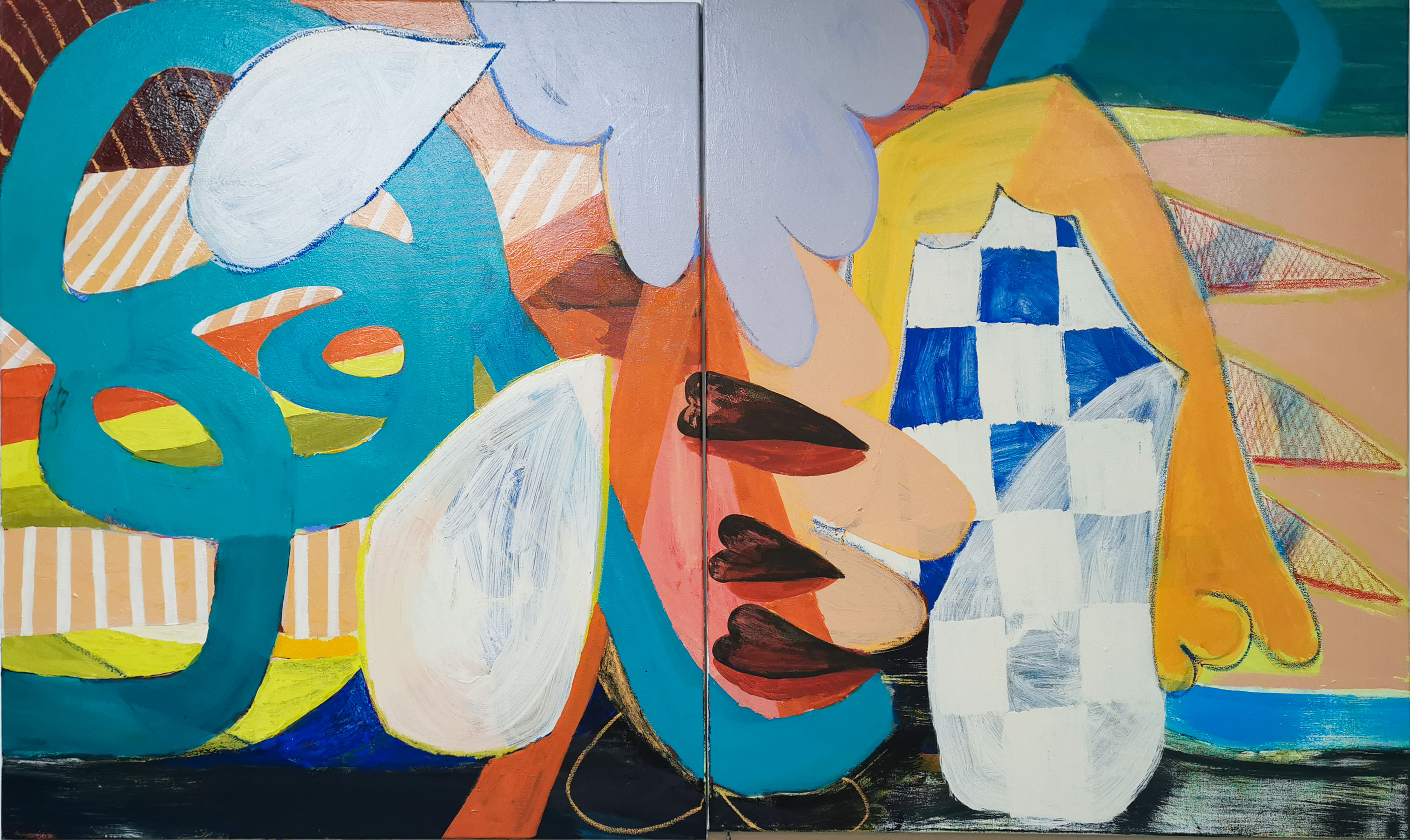 Games Room, mixed media on canvas, diptych 40″x 72″