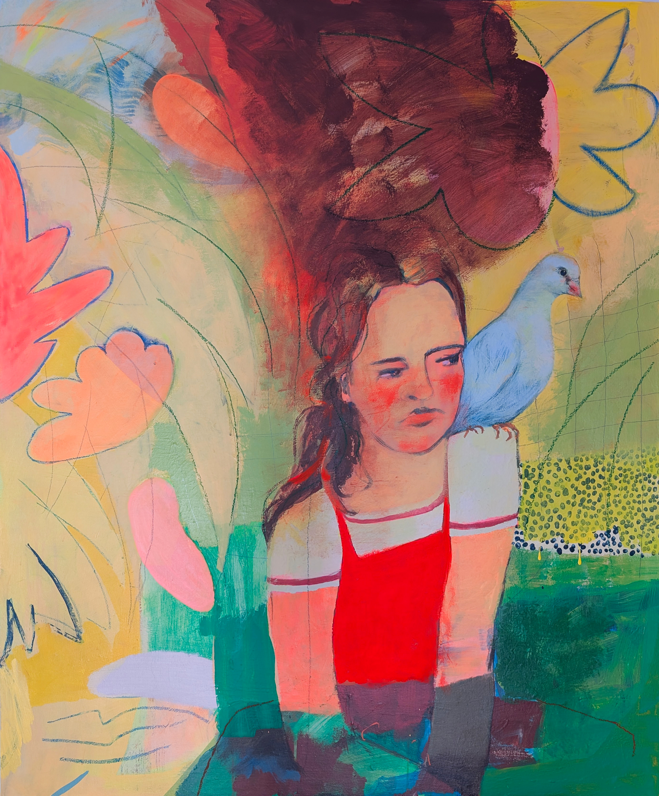 untitled, acrylic and oil stick on canvas, 32″ x 26″, 2019